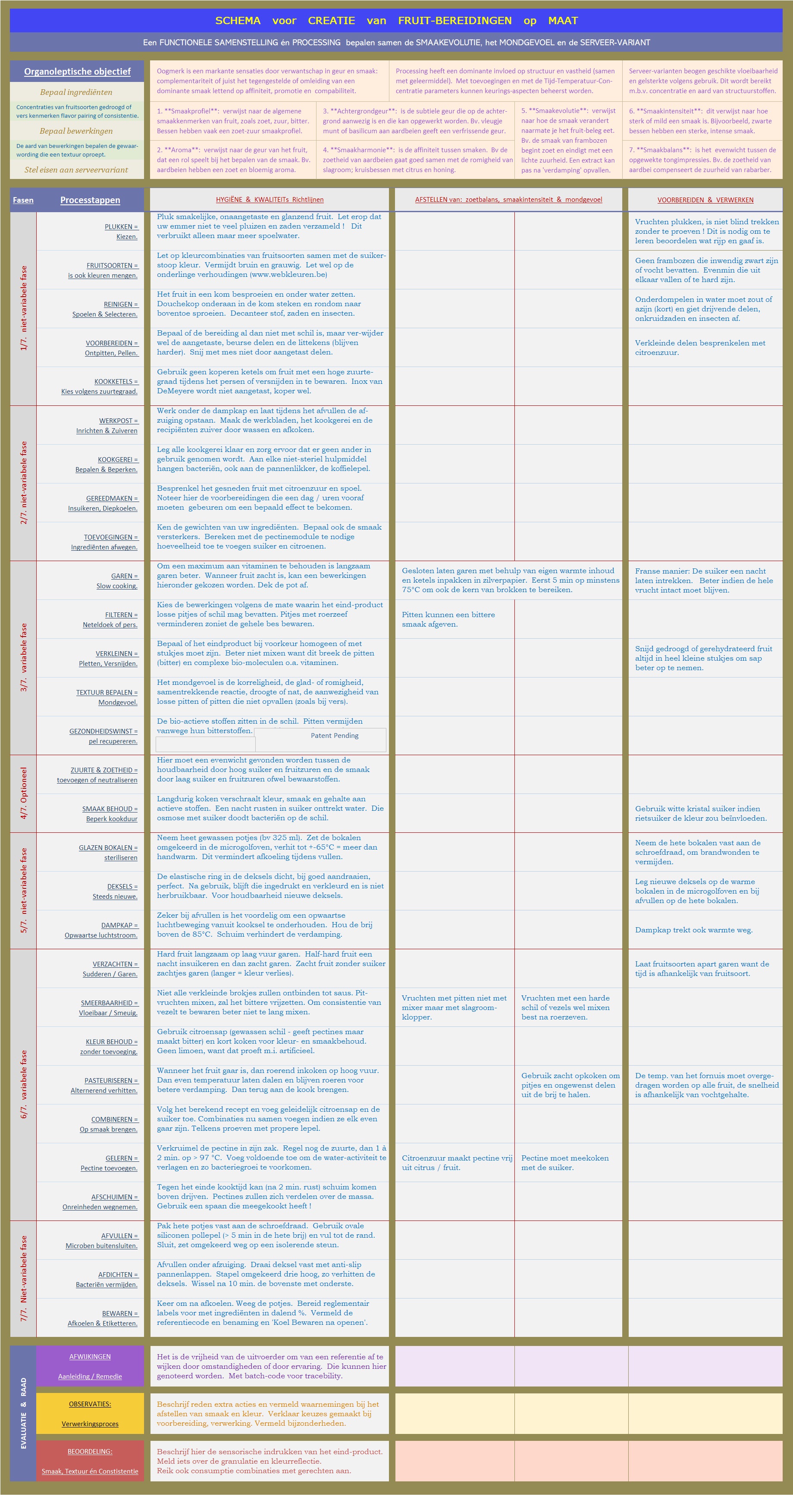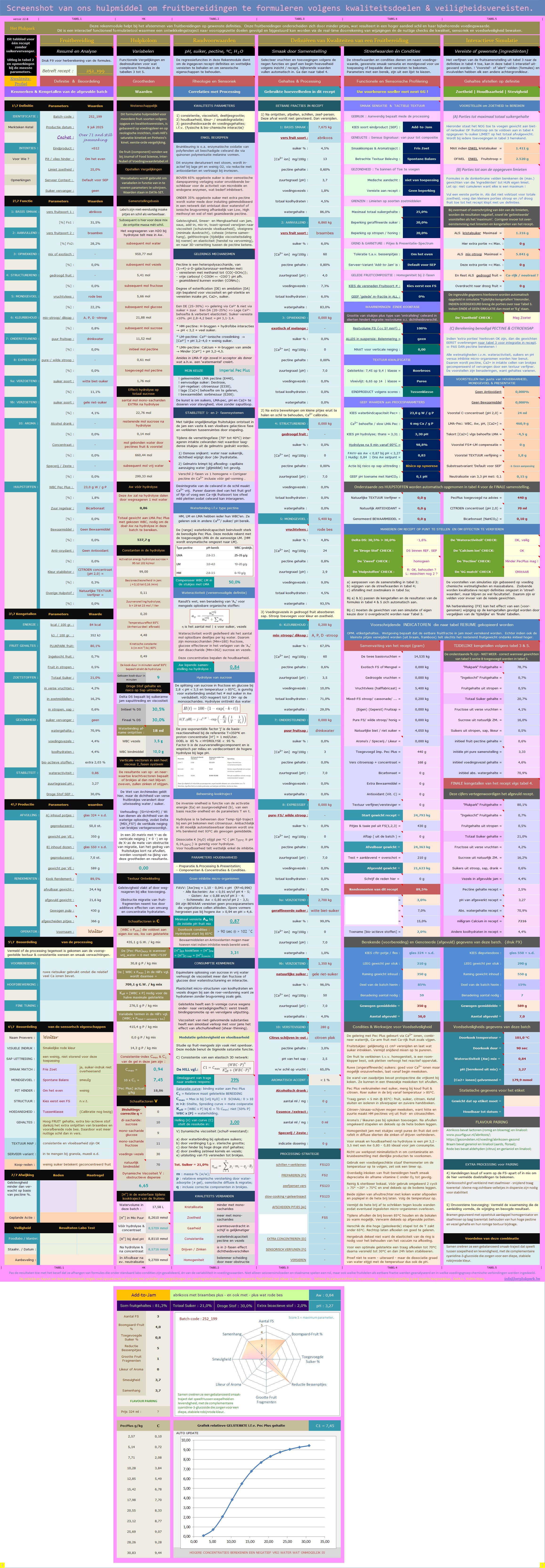 jam-formulatie-model met checks t.o.v. objectieven als gewenste gehaltes en gebruikscomfort.