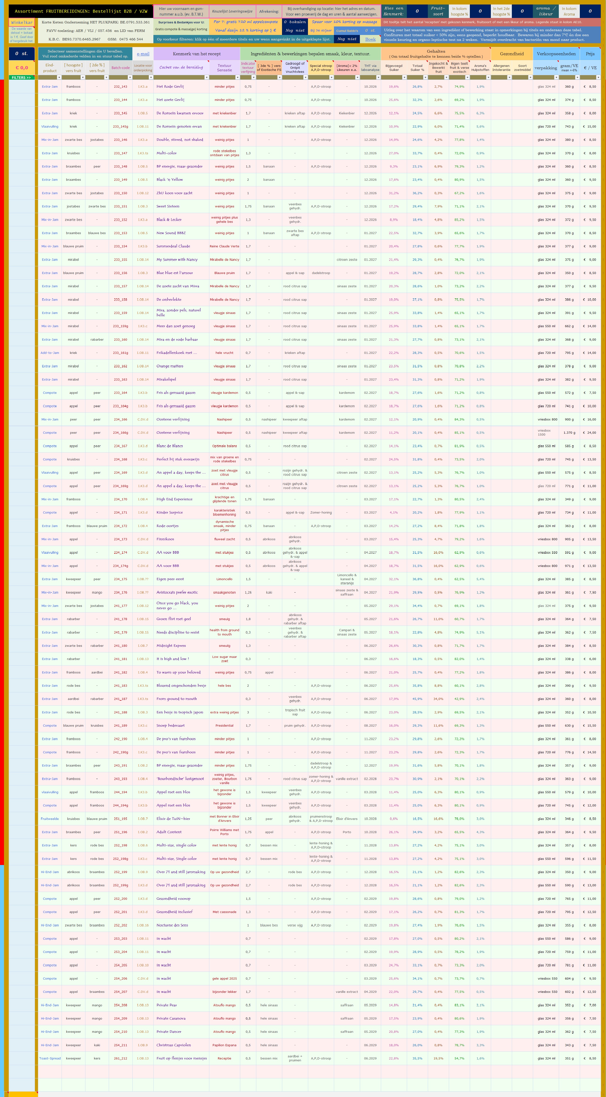 van fruitaroma's, -zuur, bitter- en zoetstoffen.