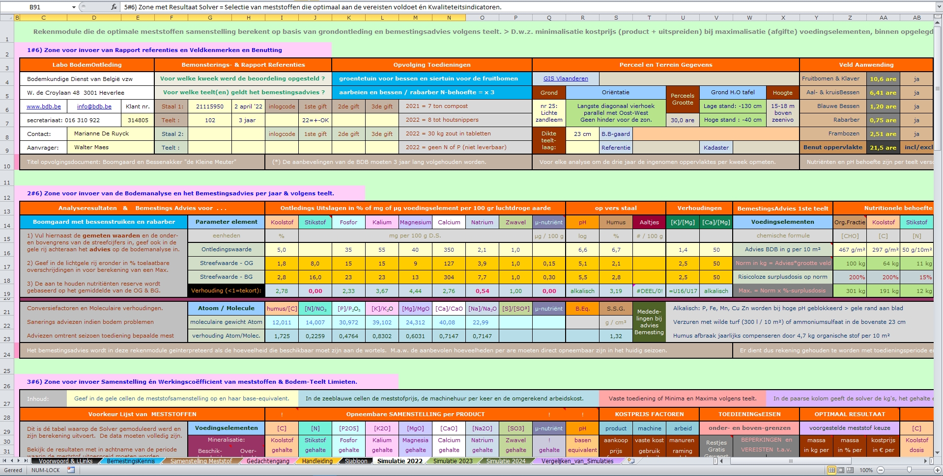Bemestings Optimalisatie v2,1 seizoen 2022-2024.Kleinere agrarische velden zijn gebaat bij de online-module van de Bodemkundige Dienst maar ik kan ook dit rekenmodel gebruiken. |